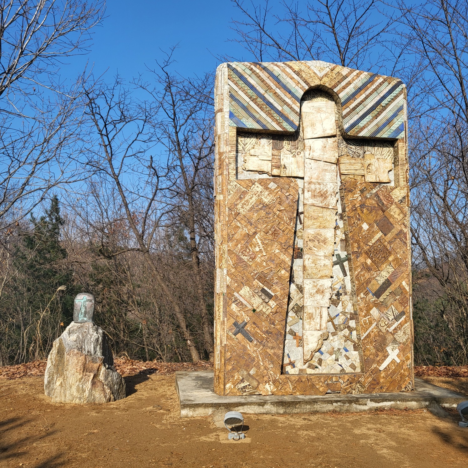 주기도문 구절구절을 나눠 성화와 말씀 기증자를 담았다. 정상에서 1,000개 말씀조각으로 만든 십자가가 참 멋지게 나를 맞아주었다.